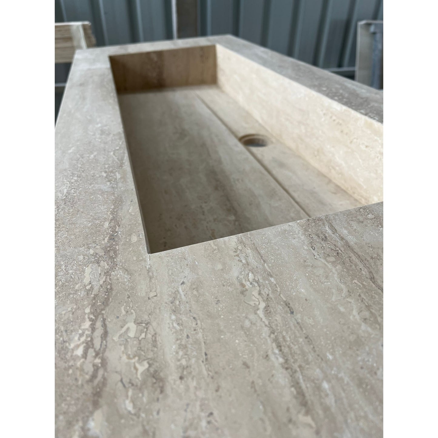 HANDCRAFTED CUSTOM TRAVERTINE TROUGH SINK