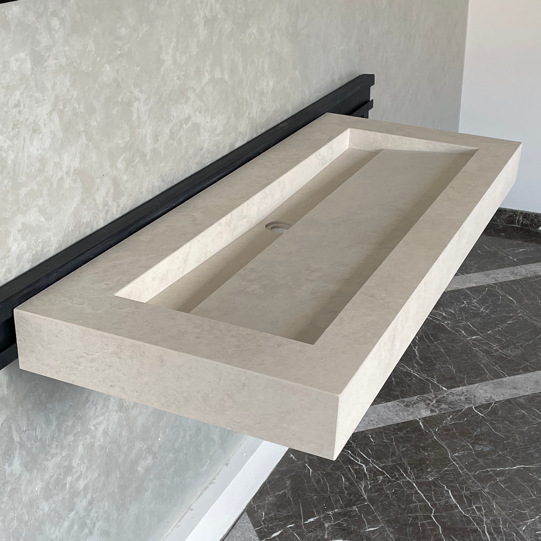 This high engineered porcelain sink was cut and assembled by hand delicately. Thanks to the latest innovations in technology, it is possible to combine the beauty of natural stone appearance and imperviability. It is a long lasting and very durable material and absolutely safe for food.