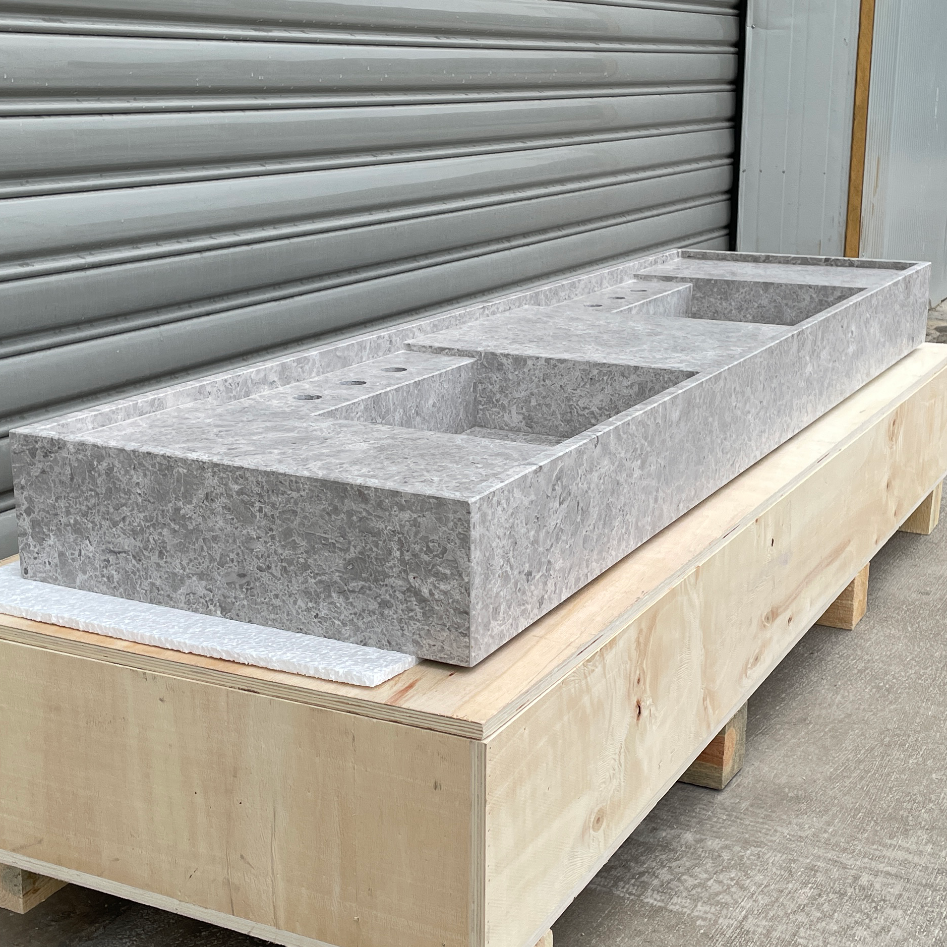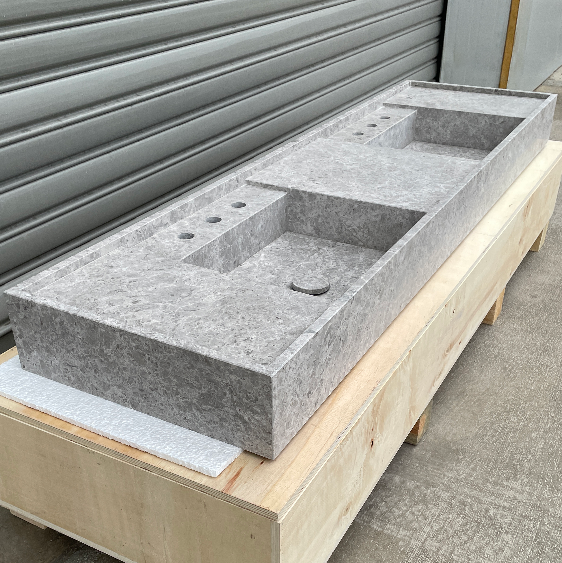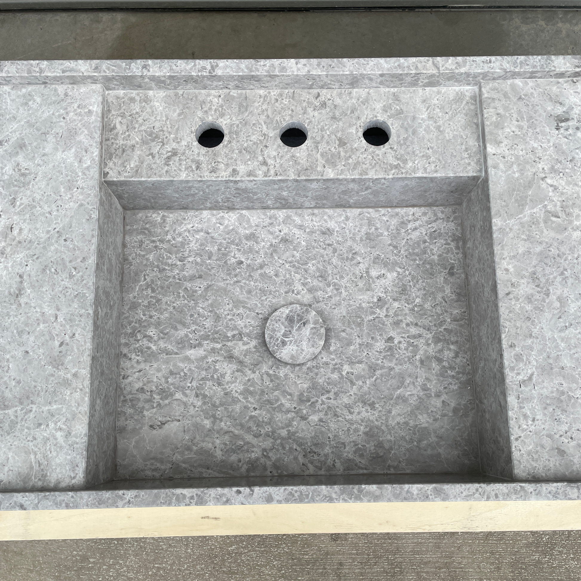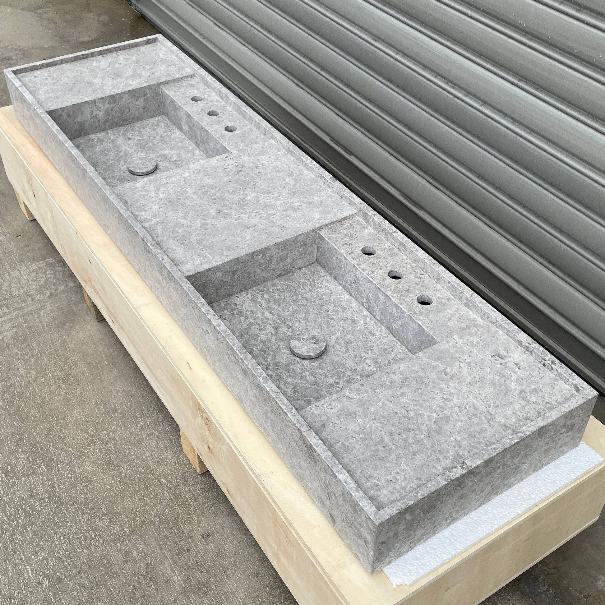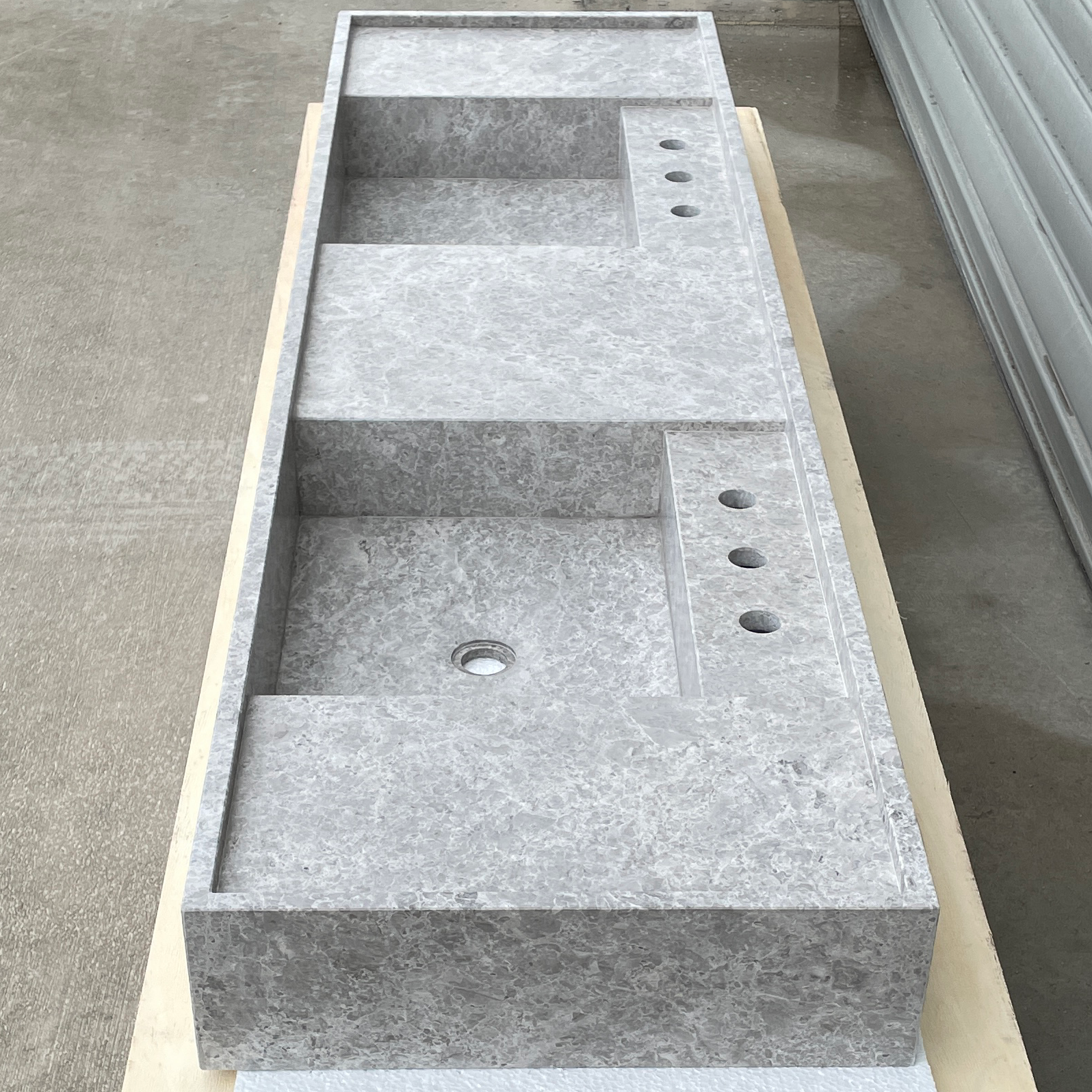 HANDCRAFTED CUSTOM TUNDRA GREY MARBLE DOUBLE SINK