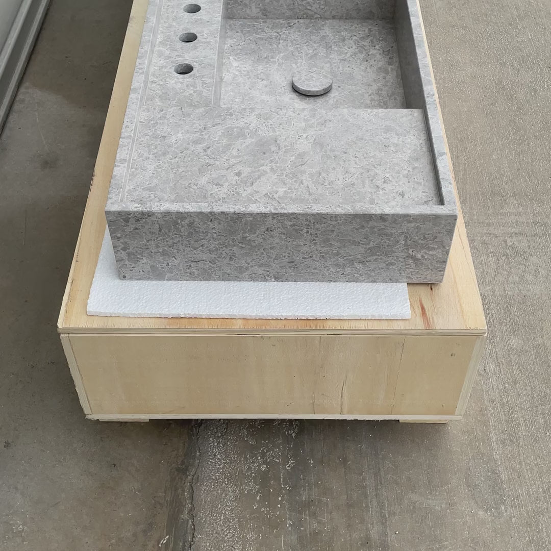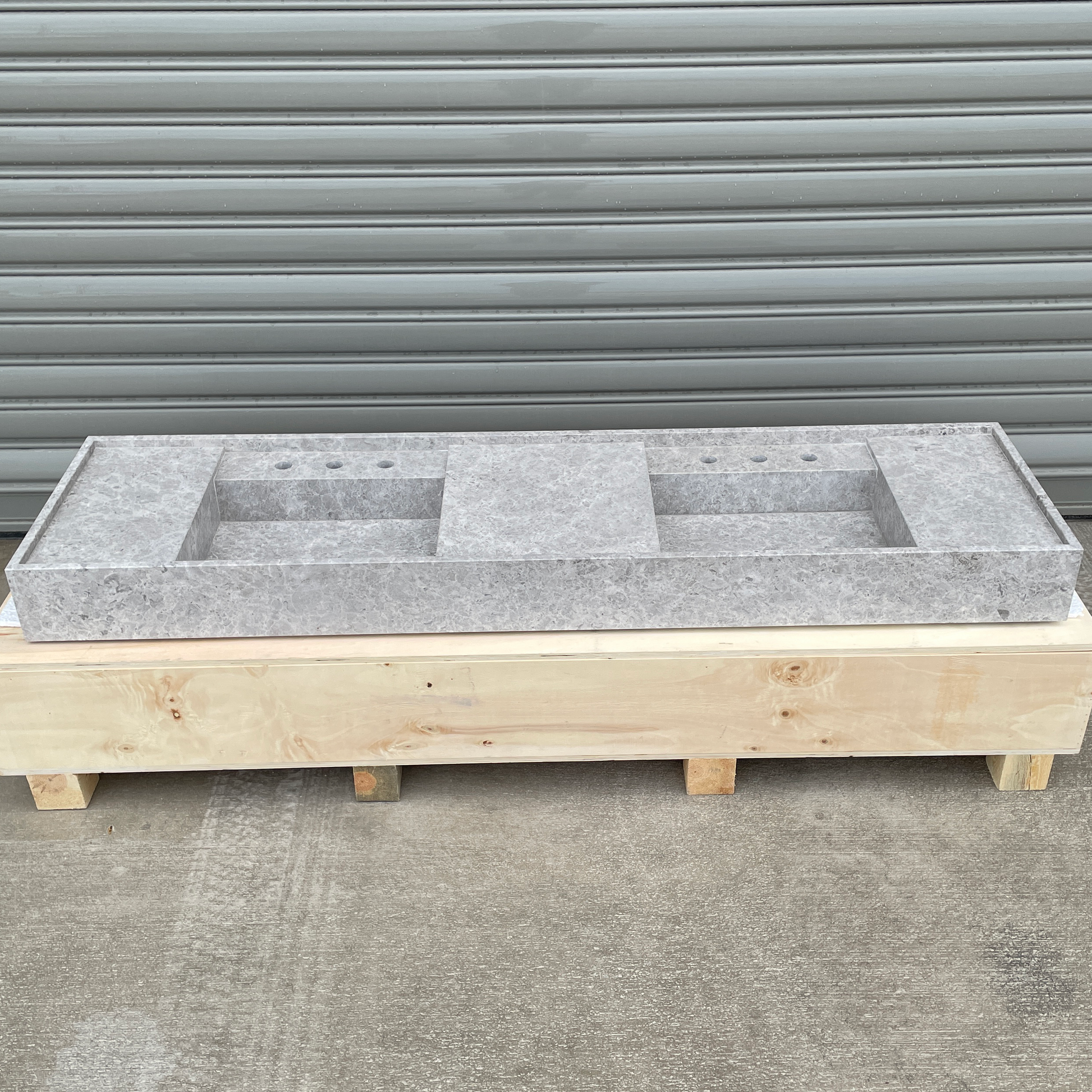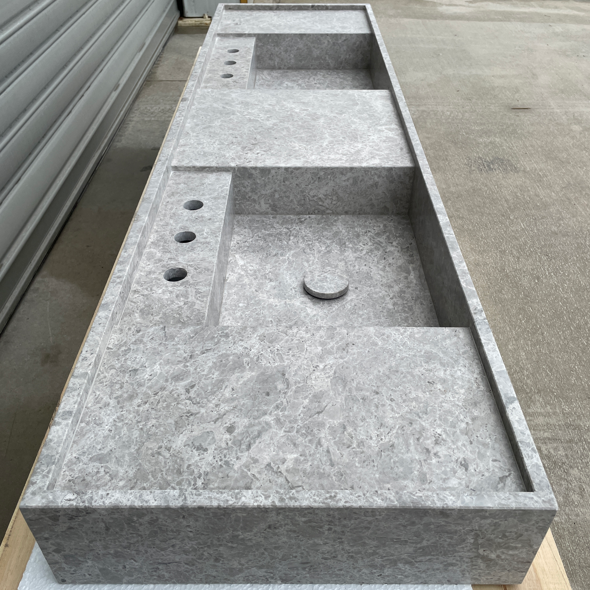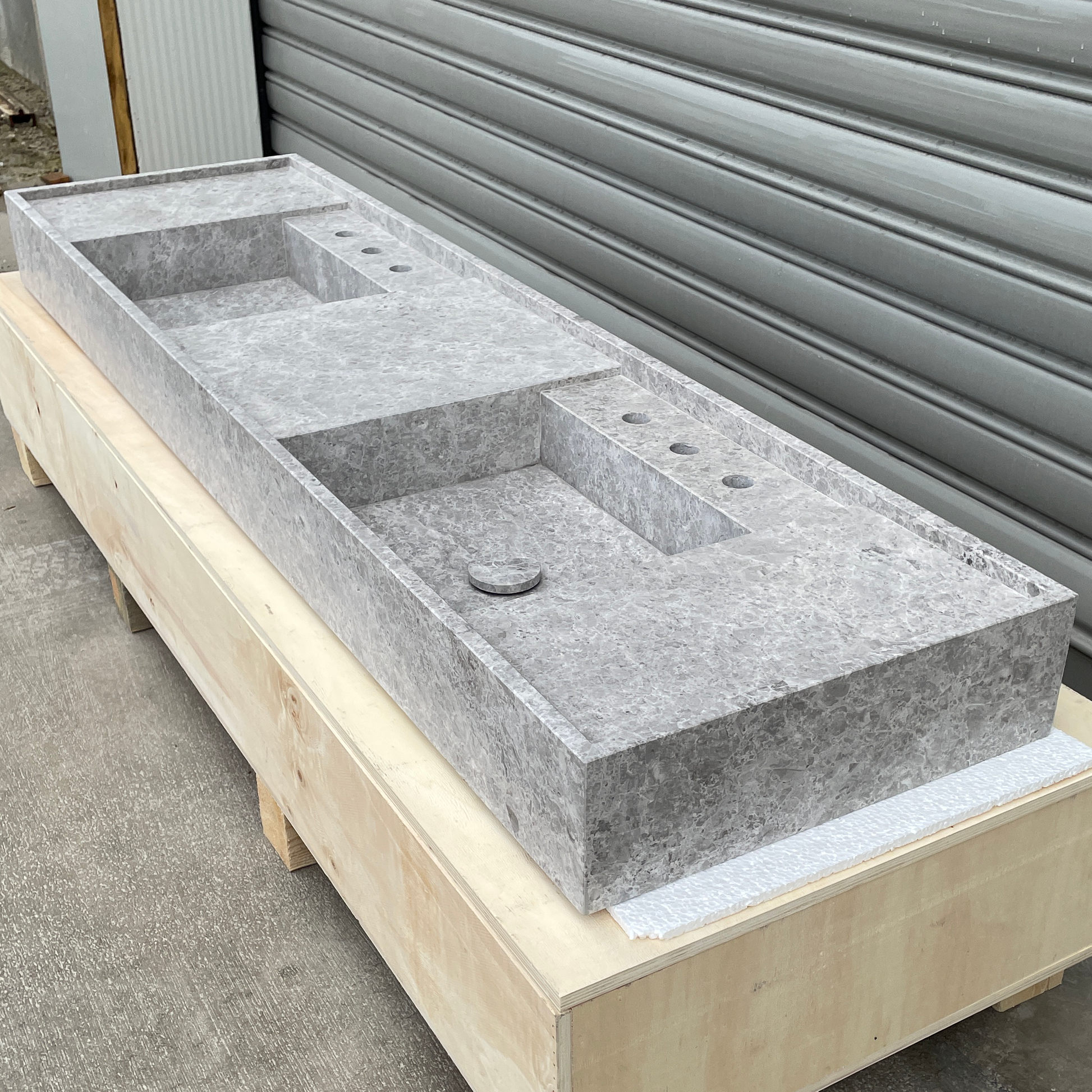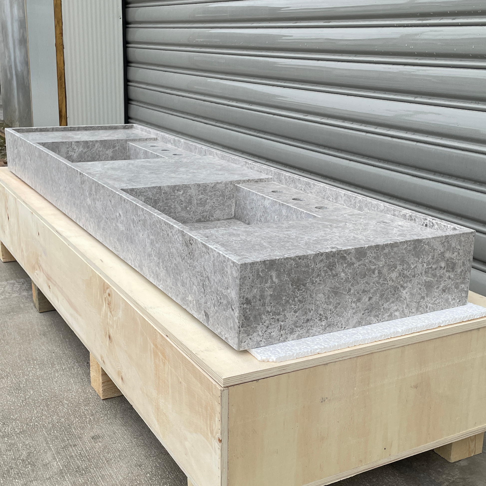 HANDCRAFTED CUSTOM TUNDRA GREY MARBLE DOUBLE SINK