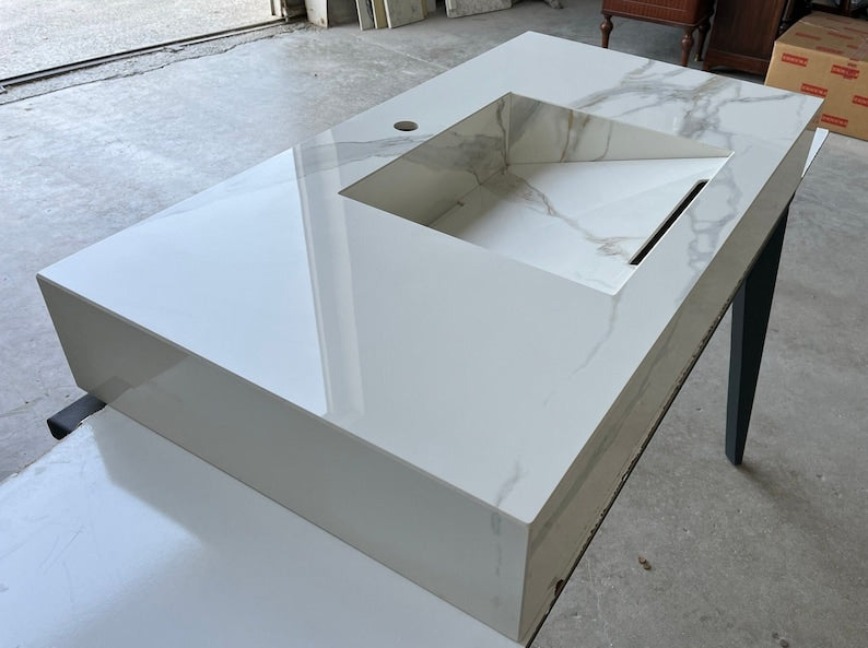 Calacatta Oro Custom Sink / Polished Finish White Porcelain Vanity